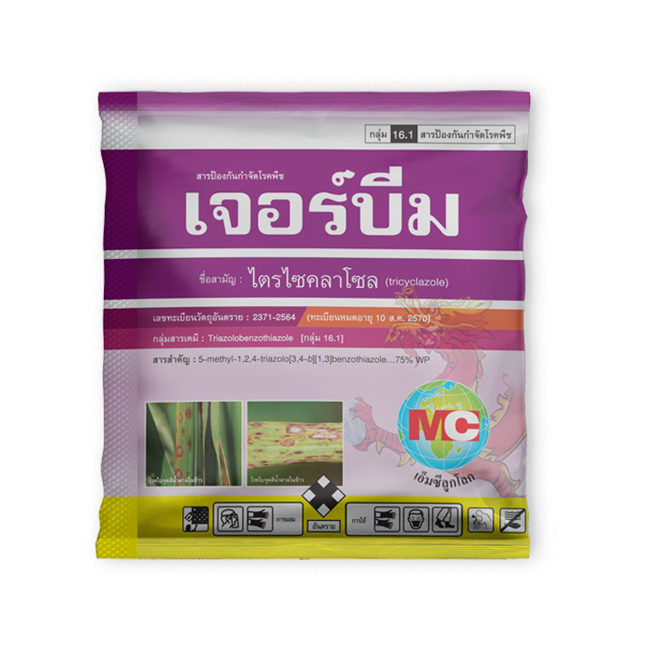 | คุณสมบัติ | ใช้ป้องกันกำจัดโรคไหม้และโรคเน่าคอรวงในนาข้าว |